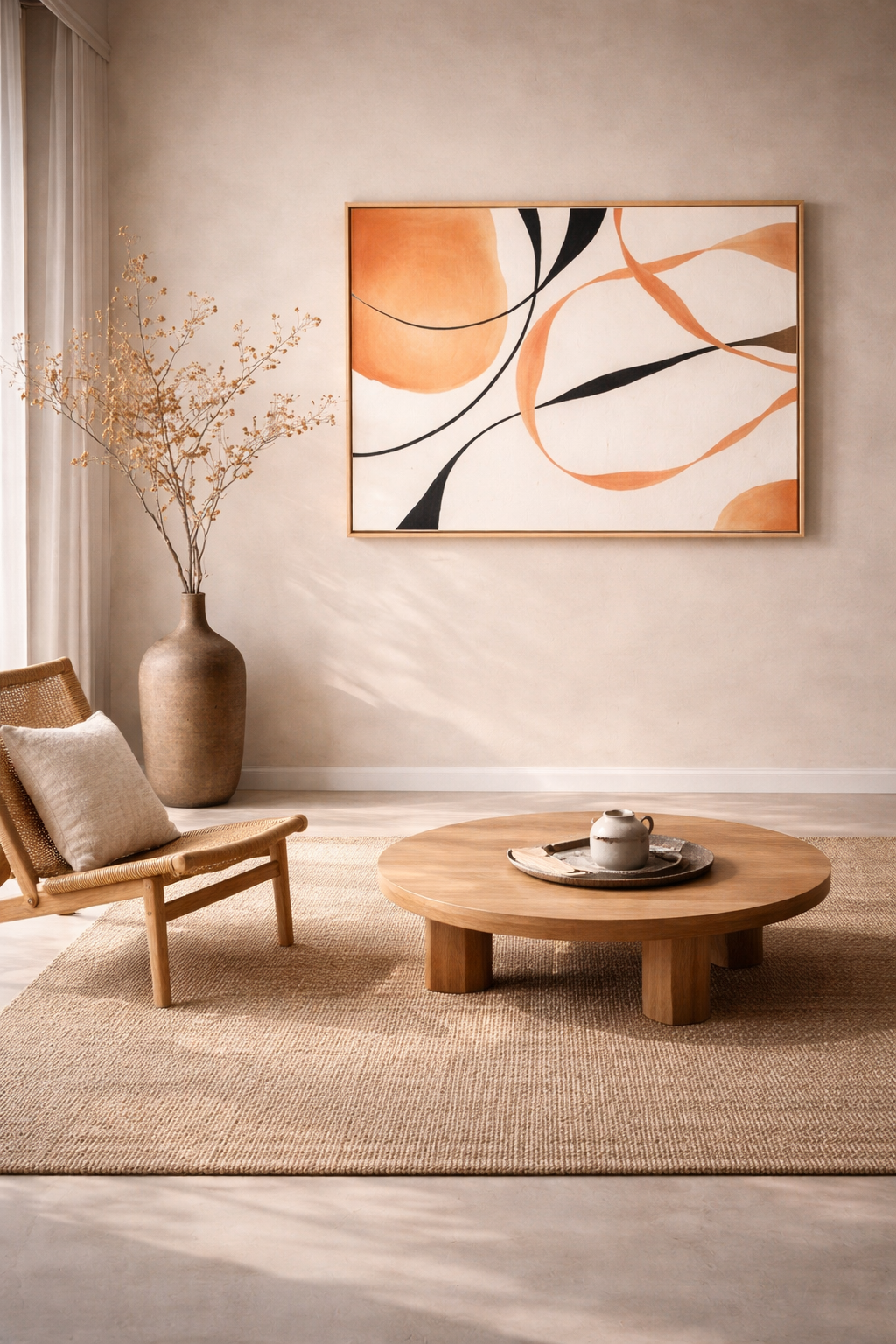 La textura evoca los muros de cal, sencillos pero cargados de historia, mientras que la paleta neutra y los volúmenes suaves dialogan con la estética wabi-sabi, donde la belleza se manifiesta en la imperfección, lo inacabado y el silencio.