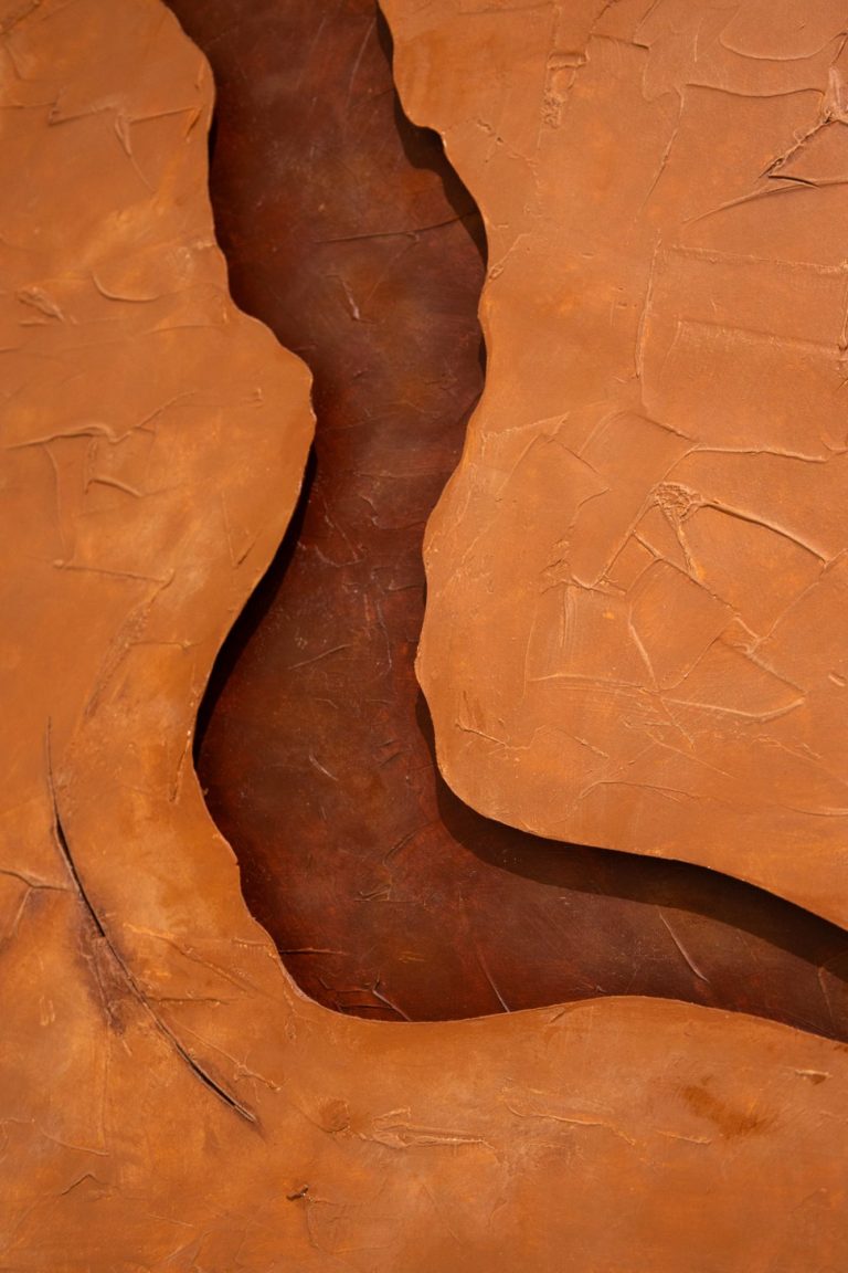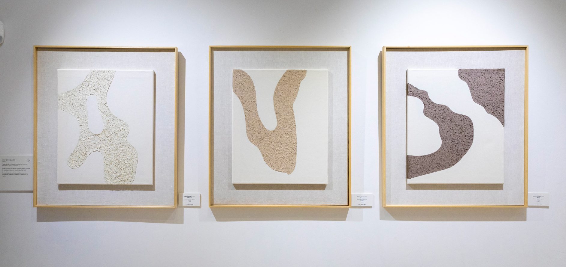 Cada obra juega con texturas orgánicas y formas evocando la serenidad de la tierra y la profundidad del vacío.