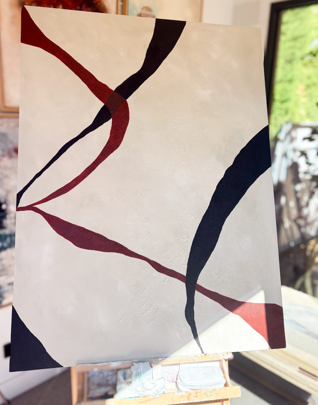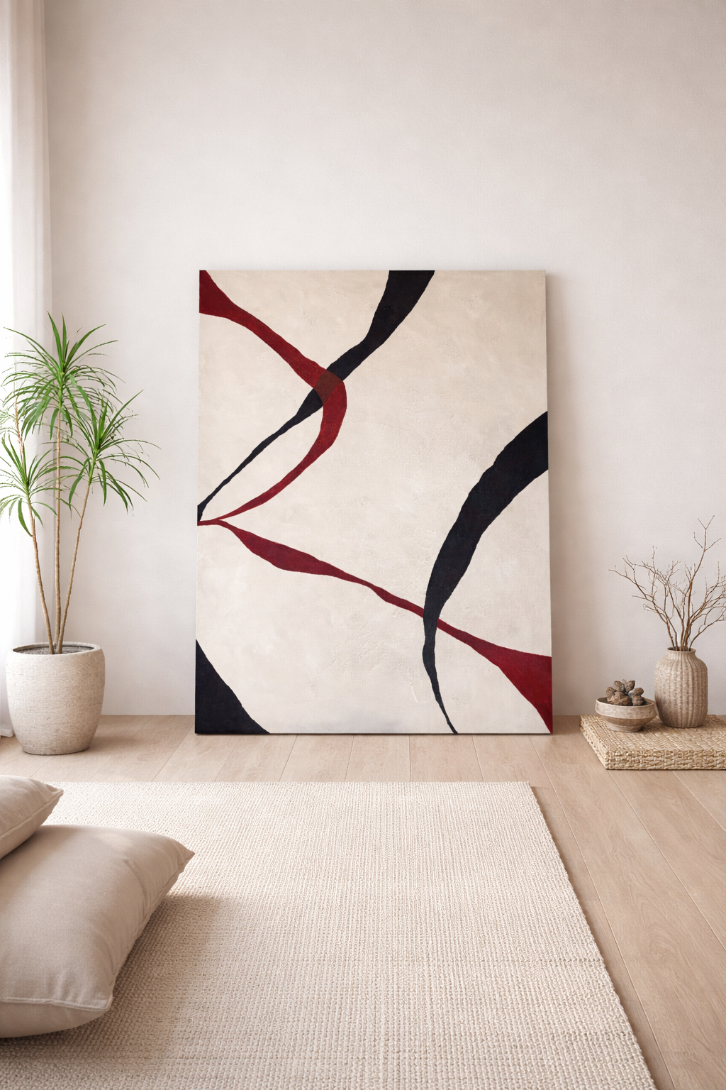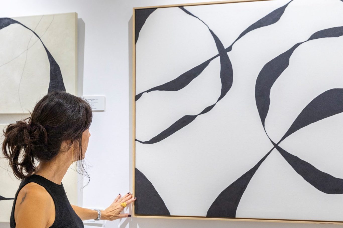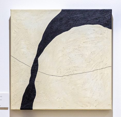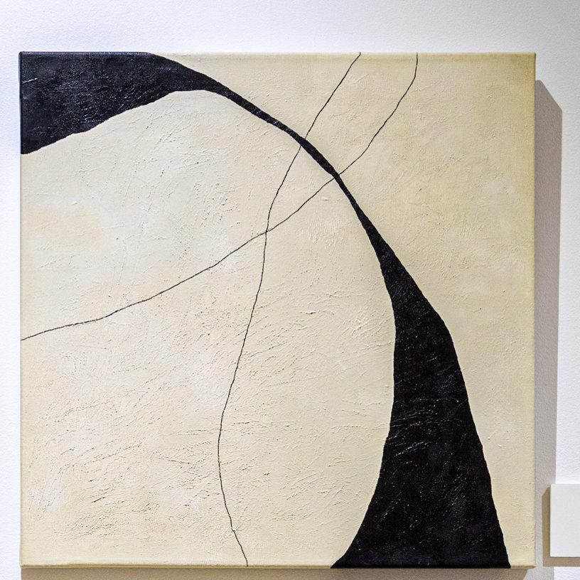 Este cuadro evoca la unión de la familia: líneas que nacen separadas pero se encuentran, se entrelazan y avanzan juntas. La fuerza del contraste entre blanco y negro refleja los opuestos que conviven en armonía.